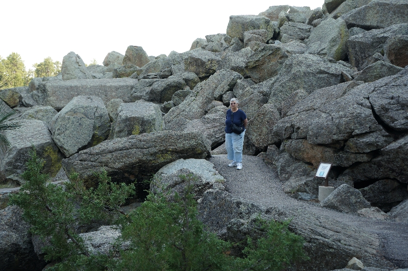 LEAH AMONG BIG BOULDERS AT BASE OF DEVIL'S TOWER