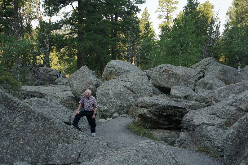 MARTY AND THE BIG BOULDERS AT BASE OF DEVIL'S TOWER - NORTH SIDE