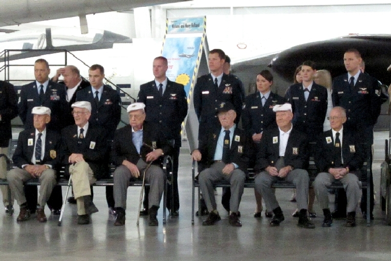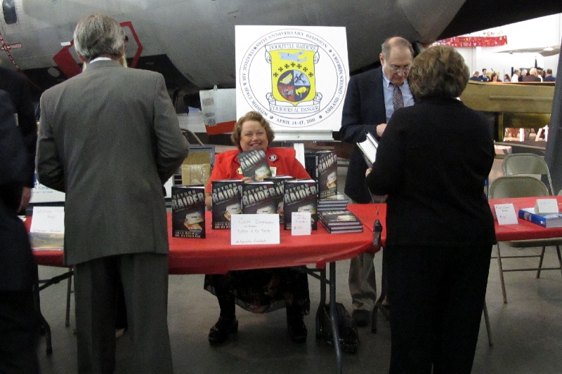 ON RIGHT END IS COL C.V. GLINES (HONORARY RAIDER) AUTHOR OF DOOLITTLE BOOKS